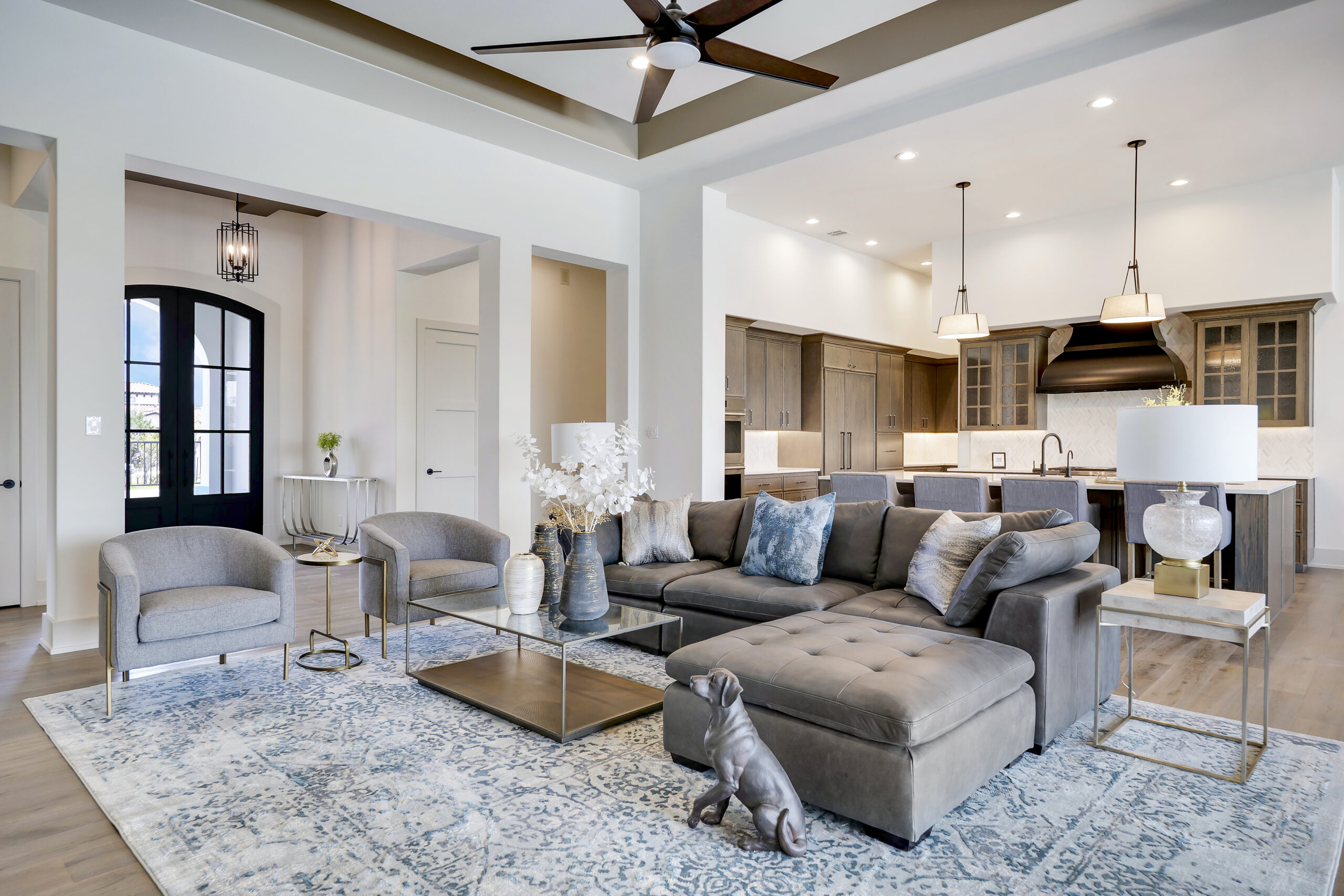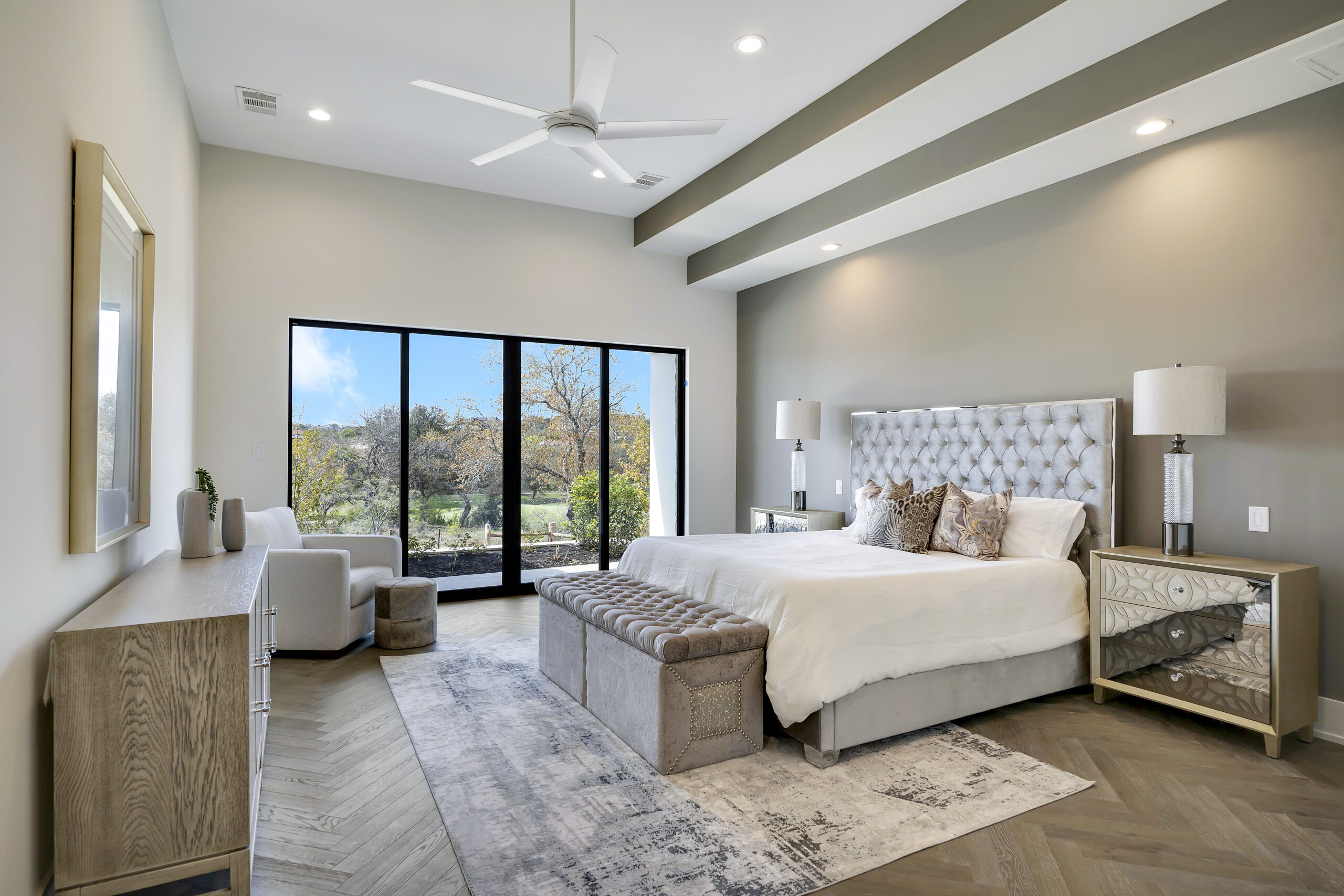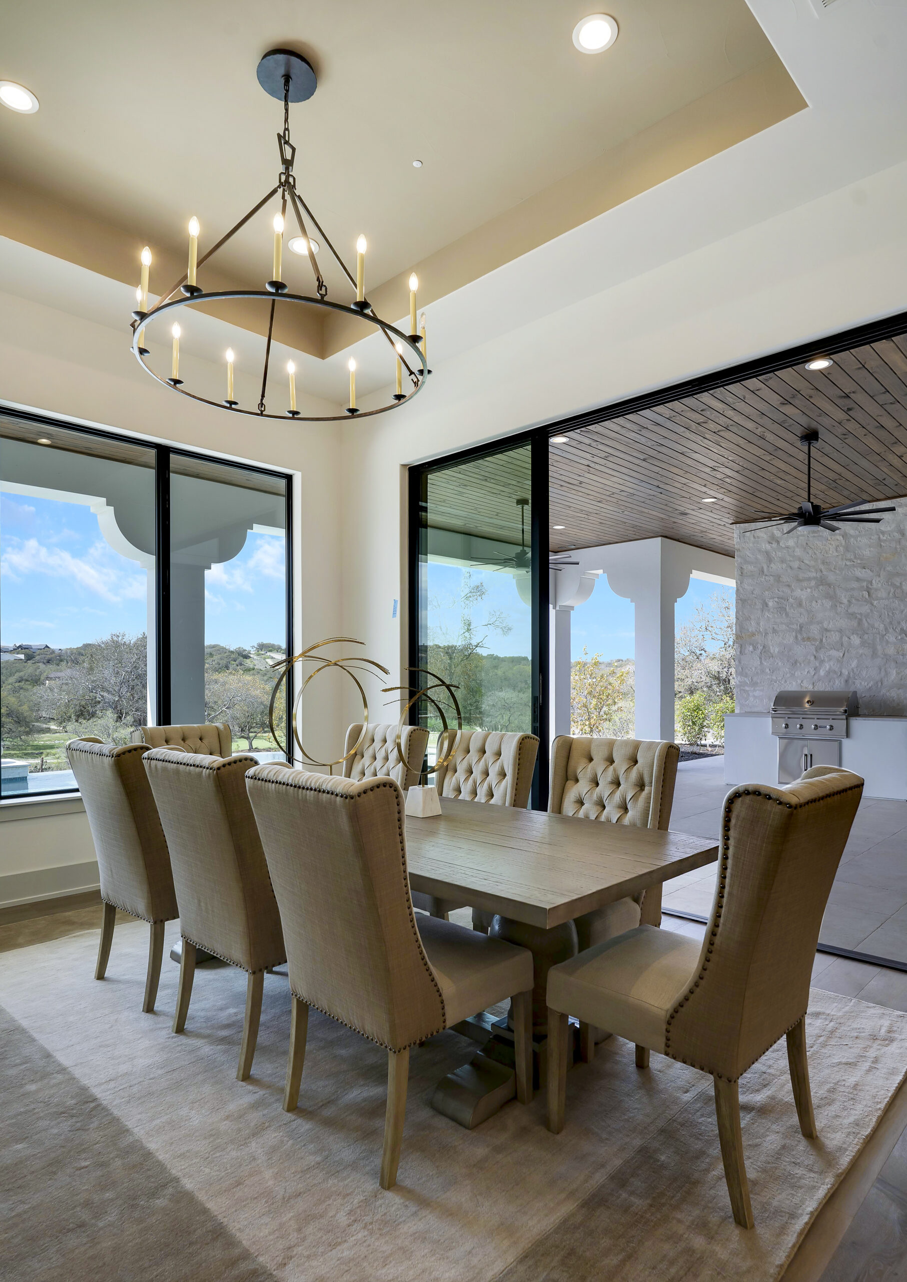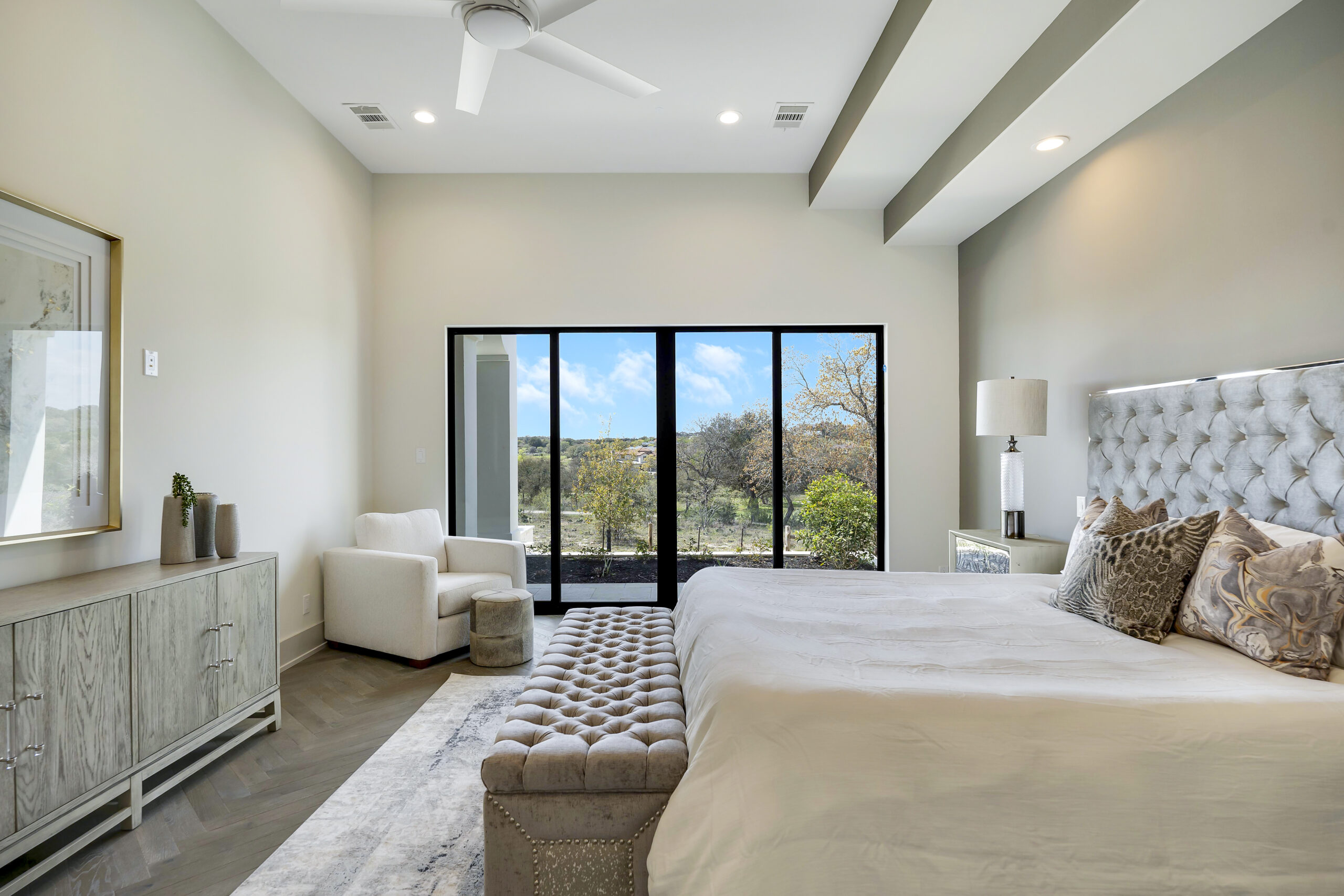 Situated on the 12th fairway of the Jack Nicklaus Signature golf course in the highly desired Texas Hill Country community of Cordillera Ranch, this transitional Santa Barbara home exudes the ultimate in luxury living. The sprawling one story design on just over an acre features 5,075 square feet of living space offering 4 bedrooms with ensuite baths, a study and an oversized game room with wet bar. The primary suite is tucked away for optimal privacy. The primary bath promotes rest and relaxation with the spa like shower, freestanding tub situated next to a cozy fireplace and a custom closet with adjustable rods and built in drawers. The gourmet kitchen will inspire anyone to cook or entertain. SubZero/Wolf appliances and custom cabinetry wrap around into a caterer's kitchen with a second sink, dishwasher and space for a secondary refrigerator. The open great room, dining and game room invite indoor/outdoor living with expansive glass doors while overlooking the back yard and pool. A powder/pool bath is also conveniently located with patio access. The tiled covered patio includes a built in gas grill and plenty of space for outdoor gathering. The negative edge pool with elevated hot tub and sun shelf features a fantastic sitting area below to take advantage of the amazing golf course and sunset views! The flex room would make an ideal exercise room or second office. The utility room includes ample cabinets for storage along with a sink and desk area. A mud bench is conveniently located just outside on the way to the 3 car garage. A separate 4th car garage is perfect for the toys and tools or could easily be converted to a guest suite. An amazing opportunity.
