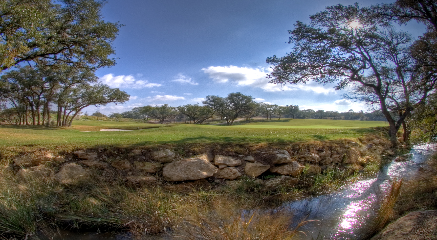 Take a drive up to look at the second landing area. I don’t recommend trying to hit this green in two unless you have 200 yards or less and can bring it in high and soft. There are two layup options: 1. Hit into the middle of the elevated flat area, which is quite generous, but might look intimidating. This will leave about 100 to 120 yards. 2. Hit just short of the green and chip to the pin. If you are 230 to 280 out, take 50 off and shoot toward the tree on the right corner of the green. The ball will release down the hill and leave you a reasonable chip to a fairly complex green.